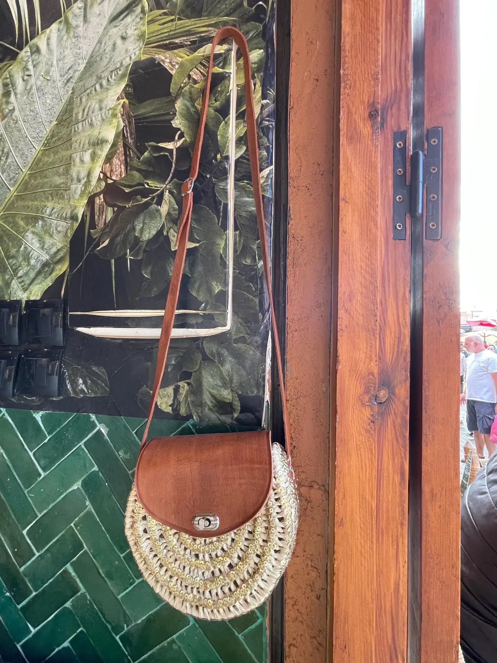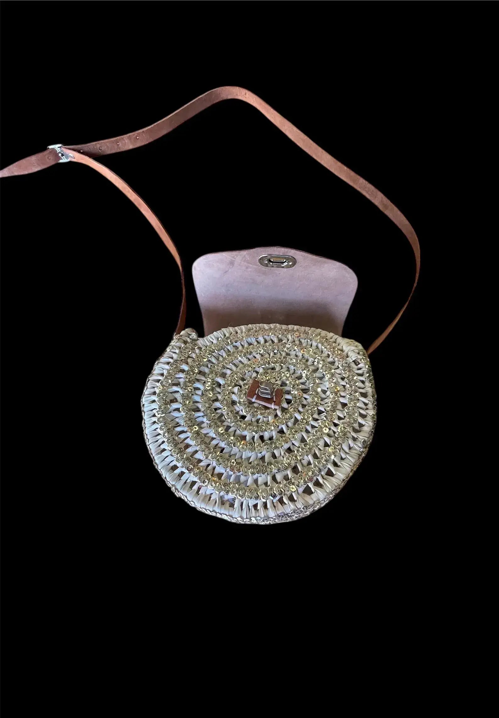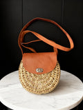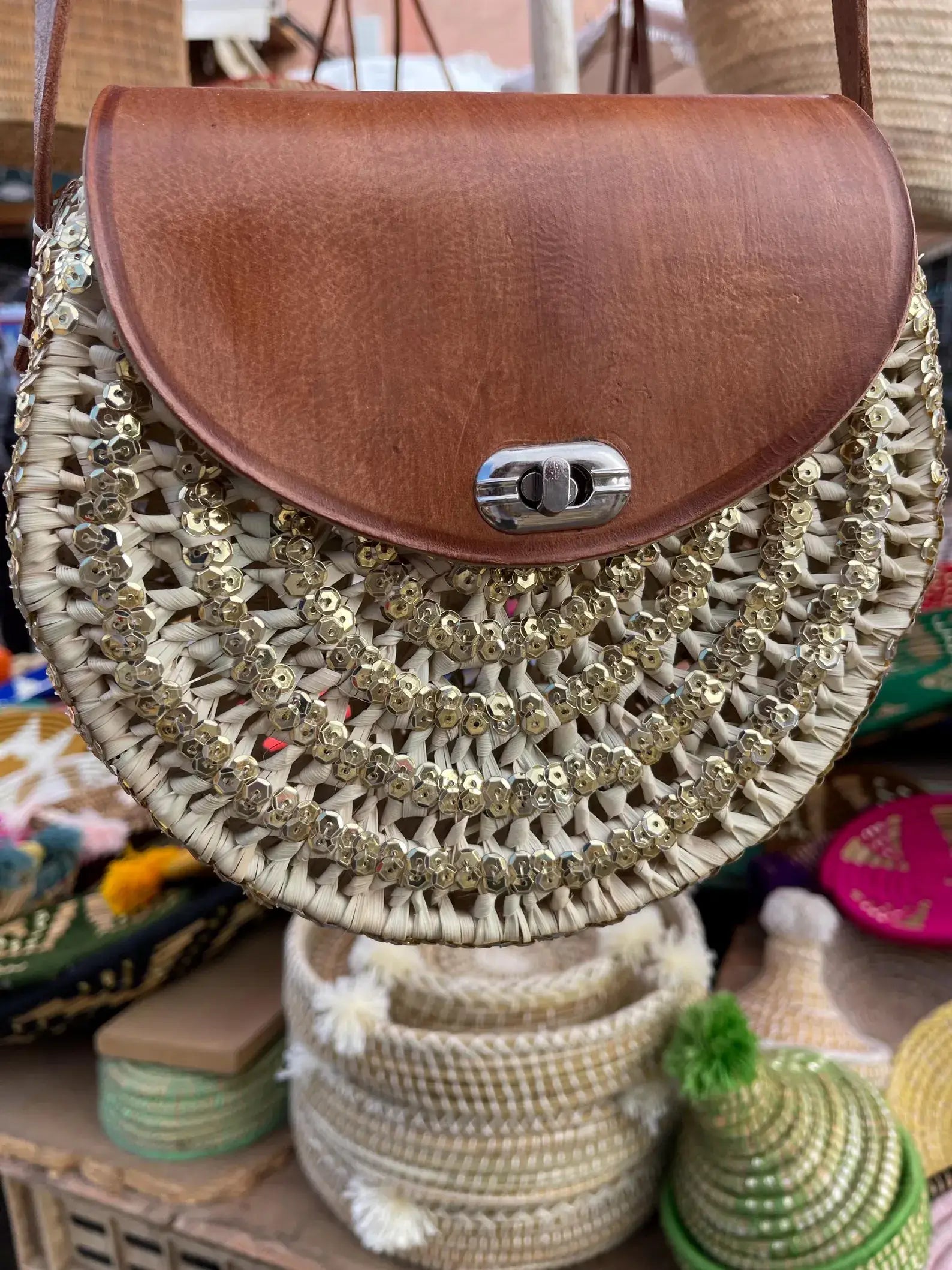 Handmade Moroccan Straw Bag: Leather Handle Woven Crossbody