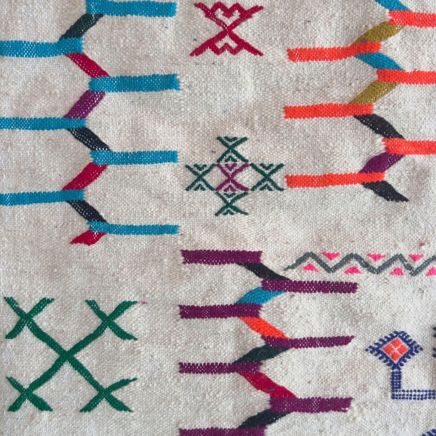 - Vibrant Tribal Patterns: The rug features a dynamic blend of colorful, geometric patterns inspired by Berber tribal symbols, giving it a modern yet culturally rich appeal.